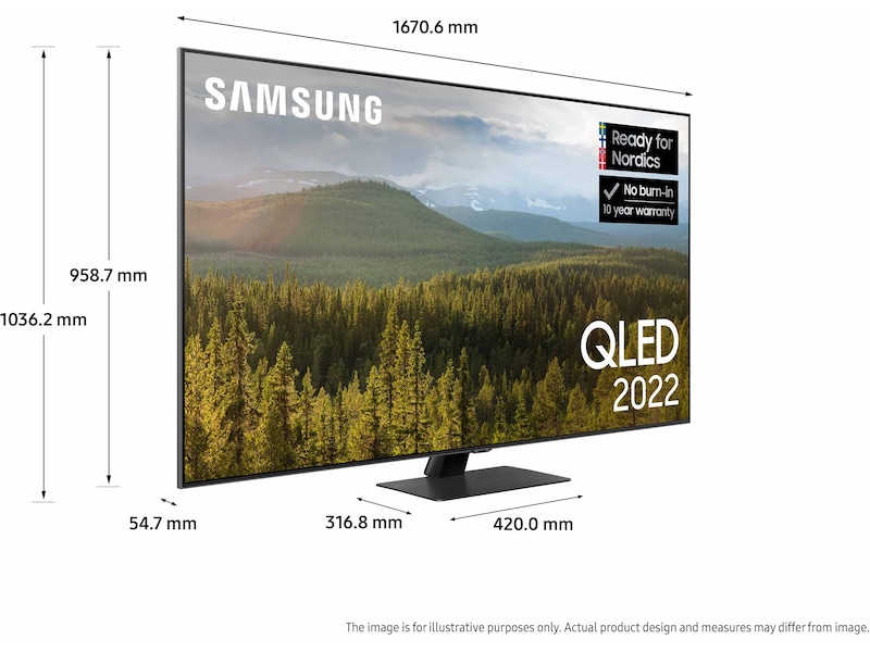 * När du köper 2022 QLED, Neo QLED eller Neo QLED 8K erbjuder Samsung 10-års skärminbrännings-garanti. Garantin gäller i 10 år från köpdatum. För att garantin ska gälla krävs en kopia av köpkvittot och registrering på Samsungs webbplats inom 90 dagar efter köpet. Gäller från 1 apr. 2022 - 31 aug 2023.