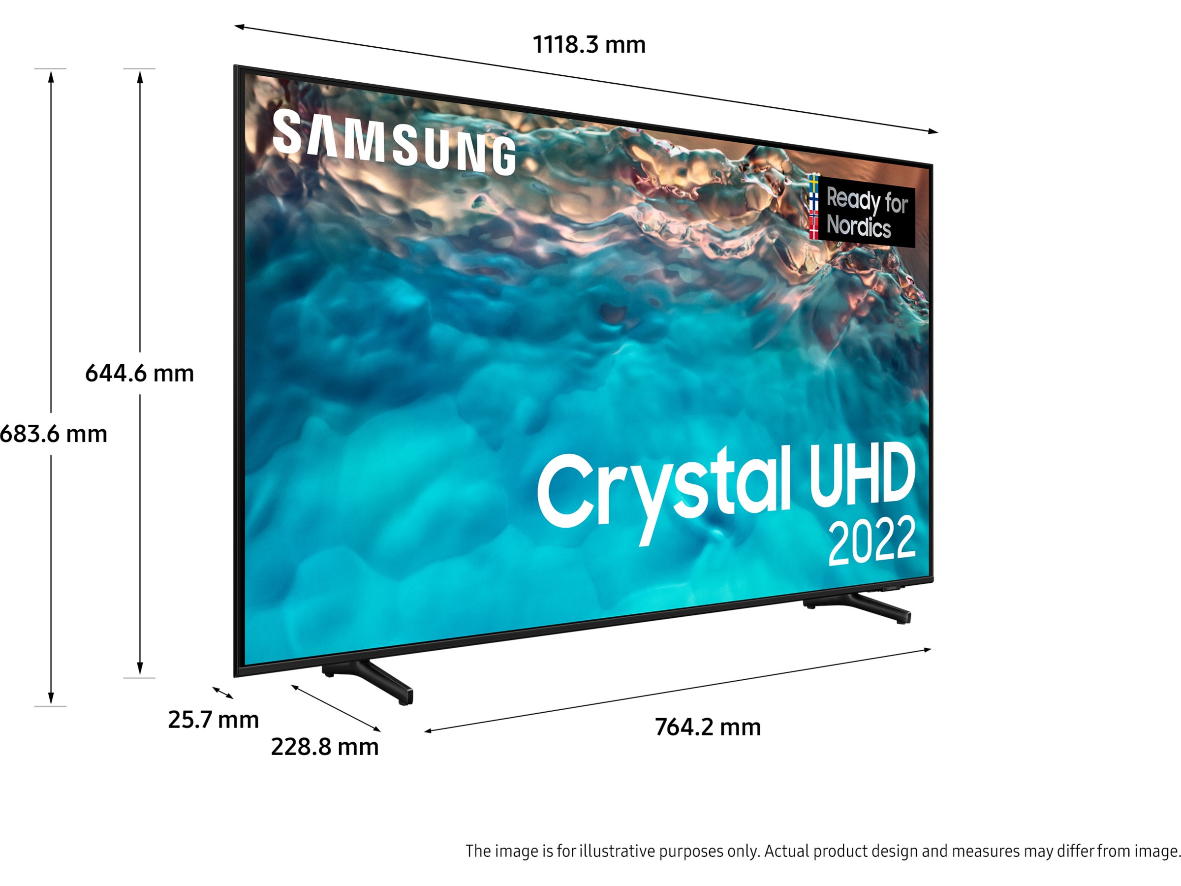 Skärm utan ställ - 111.83 cm x 2.57 cm x 64.46 cm x 11.5 kg, Skärm med ställ - 111.83 cm x 22.88 cm x 68.36 cm x 11.8 kg