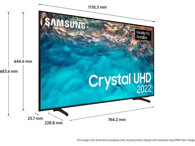 Stilren tunn design som gör TV:n lika snygg på väggen som på TV-bänken.*
