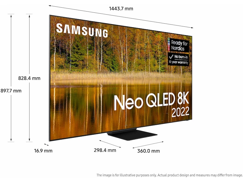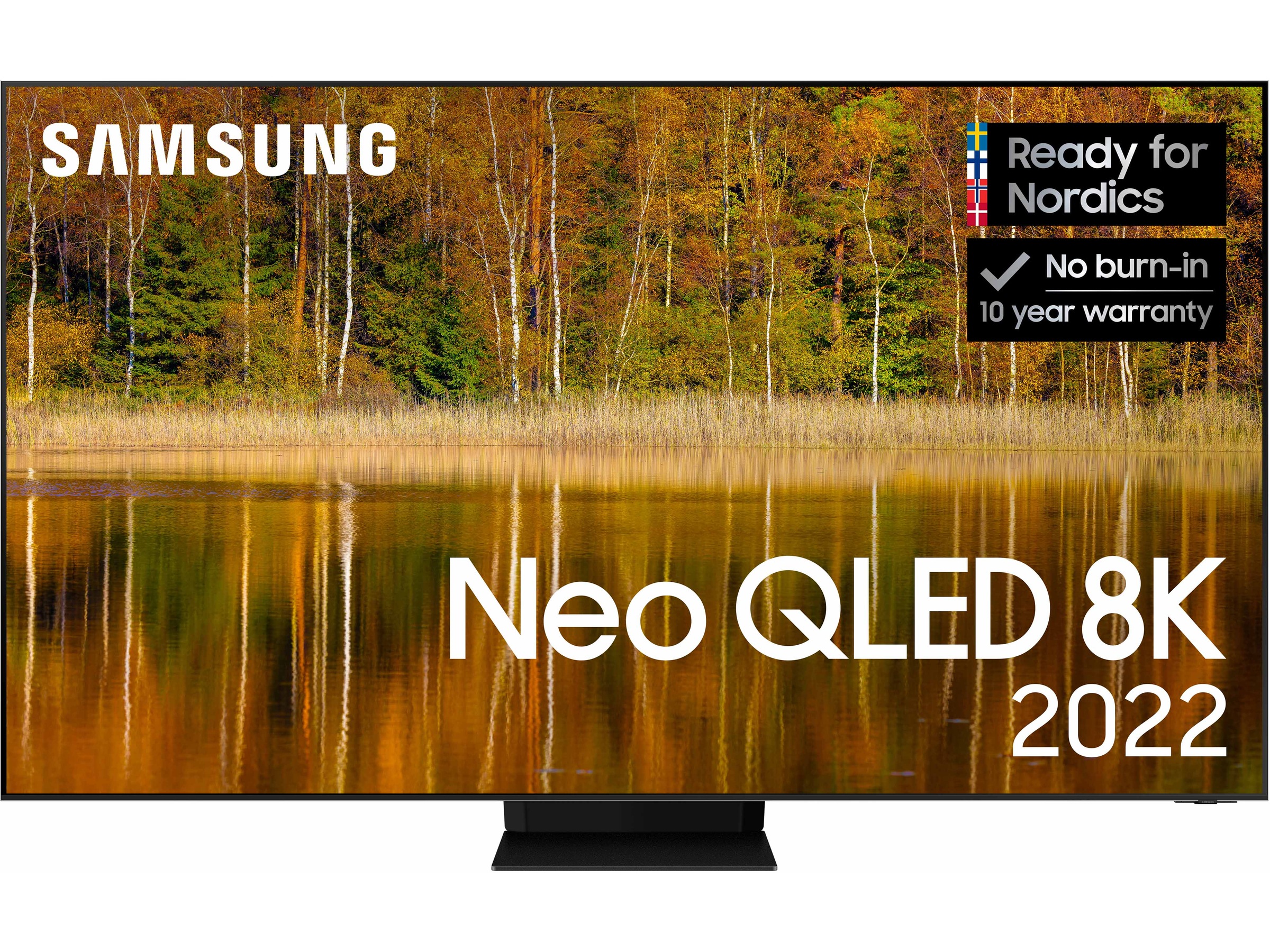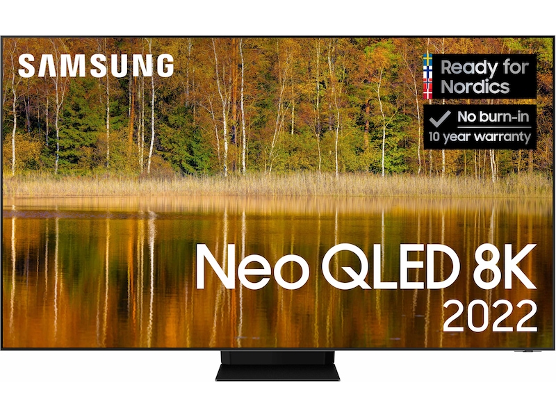 * När du köper 2022 QLED, Neo QLED eller Neo QLED 8K erbjuder Samsung 10-års skärminbrännings-garanti. Garantin gäller i 10 år från köpdatum. För att garantin ska gälla krävs en kopia av köpkvittot och registrering på Samsungs webbplats inom 90 dagar efter köpet. Gäller från 1 apr. 2022 - 31 aug 2023.