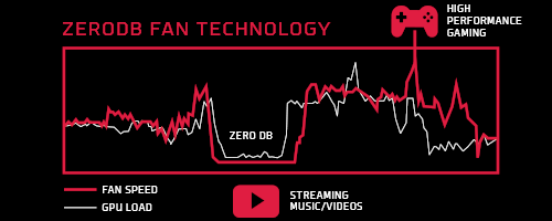 XFX-fläktarna är utrustade för att köra på högsta möjliga prestanda, medan våra Zero dB fläktsystem kommer att hålla dina fläktar igång på effektiv RPM för att minimera irriterande fläktljud genom att sänka RPM ända ner till noll RPM. När värmen är på under intensiv gaming kommer våra fläktar att öka efter behov.