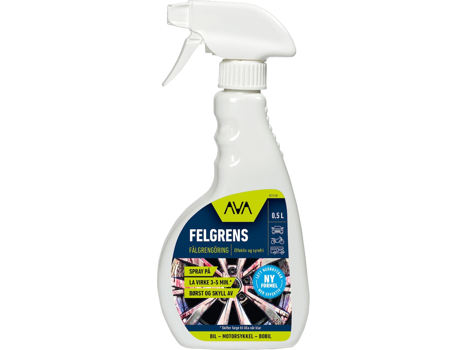 - AVA fälgrengöring är syrafri och kan användas på alla typer av fälgar och på billack.