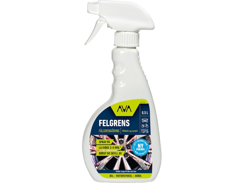 - AVA fälgrengöring levereras i en praktisk sprayflaska som gör appliceringen till en lek.