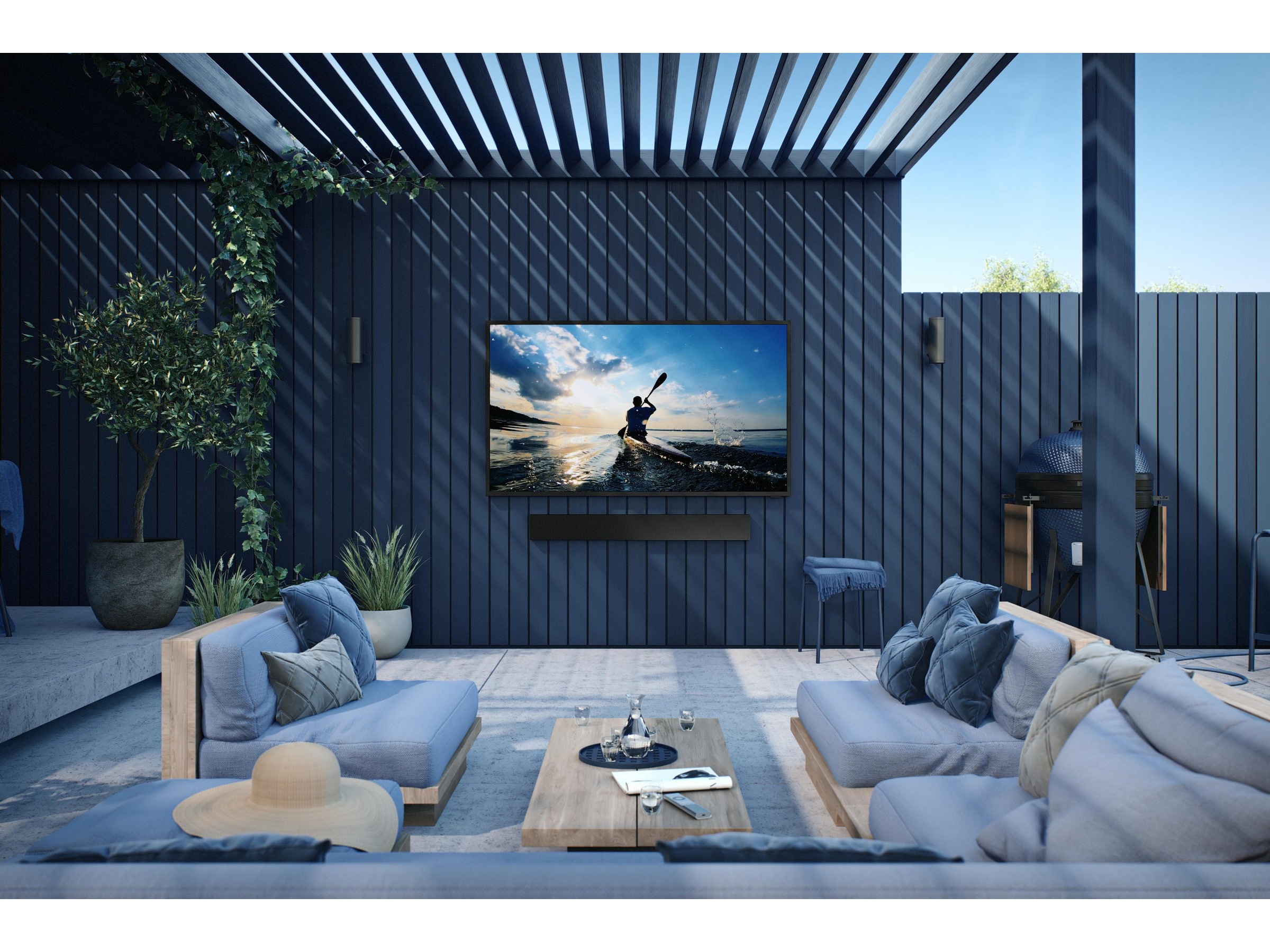 Utomhus-TV utrustad med QLED teknologi. Framtagen för dig som vill se på TV samtidigt som du njuter av uteplatsen.