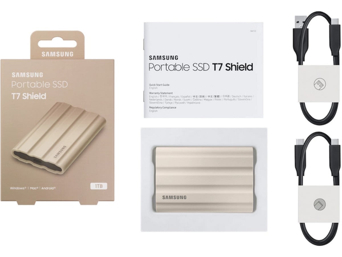 Tuff, snabb och kompakt. Den helt nya robusta PSSD T7 Shield är byggd för att hålla ut med utrymme att skapa tack vare en IP65-klassning för damm-* och vattentålighet**.