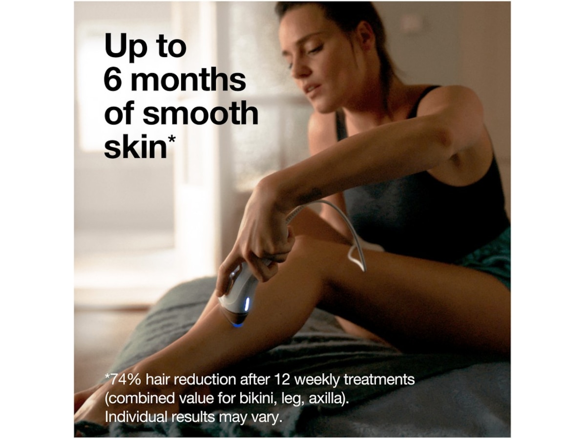 Silk-Expert Pro 5 använder avancerad IPL-teknik för att ge dig slät hud i upp till ett år – med synlig hårborttagning hemma på bara tre veckor.