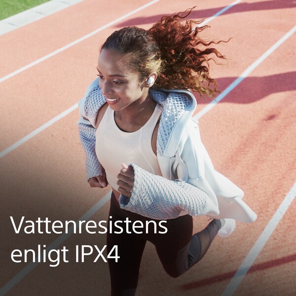 Med en IPX4-vattentålighet kan varken stänk eller skvätt stoppa dessa Sony earbuds och du kan fortsätta njuta av musiken.