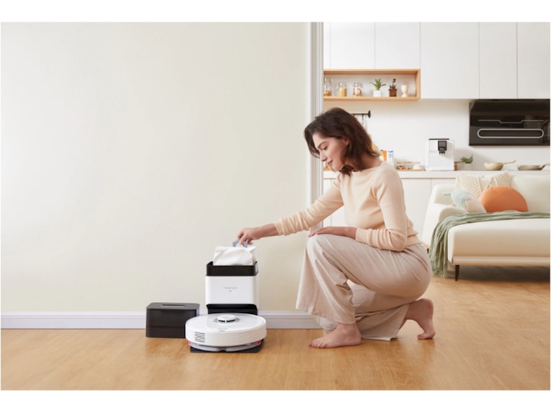Rengör ofta, töm sällan med Auto-Empty Dock Pure. Den tömmer din robot automatiskt i sin 2,5 l stora dammsäck vid varje rengöring i upp till 7 veckor. När påsen är full kan den bytas ut på några sekunder.