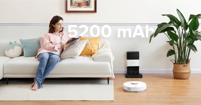 Q7 Max+ drivs av ett stort 5200 mAh Li-ion-kraftverk och kan rengöra nonstop i upp till 3 timmar på en enda laddning. Det räcker för att ta itu med de flesta bostäder.