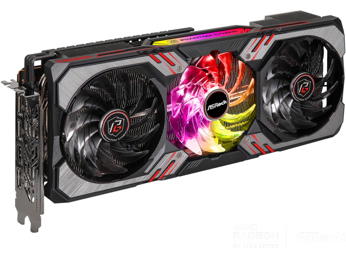 Egenskaper för videoadapter Phantom Gaming 3X Cooling System, Nickelpläterad kopparbas, Bakre metalplåt, Reinforced Metal Frame, Striped Axial Fan, 0dB Technology, Ultrafit-värmerör, AMD FidelityFX Super Resolution (FSR), FreeSync Technology, Super Alloy Power-teknik, RDNA 2 Architecture, Luftavböjande fläns, 2,75-facks kylfläkt, Polychrome SYNC