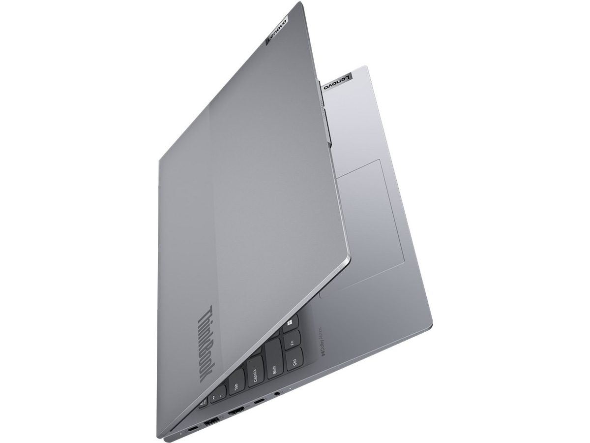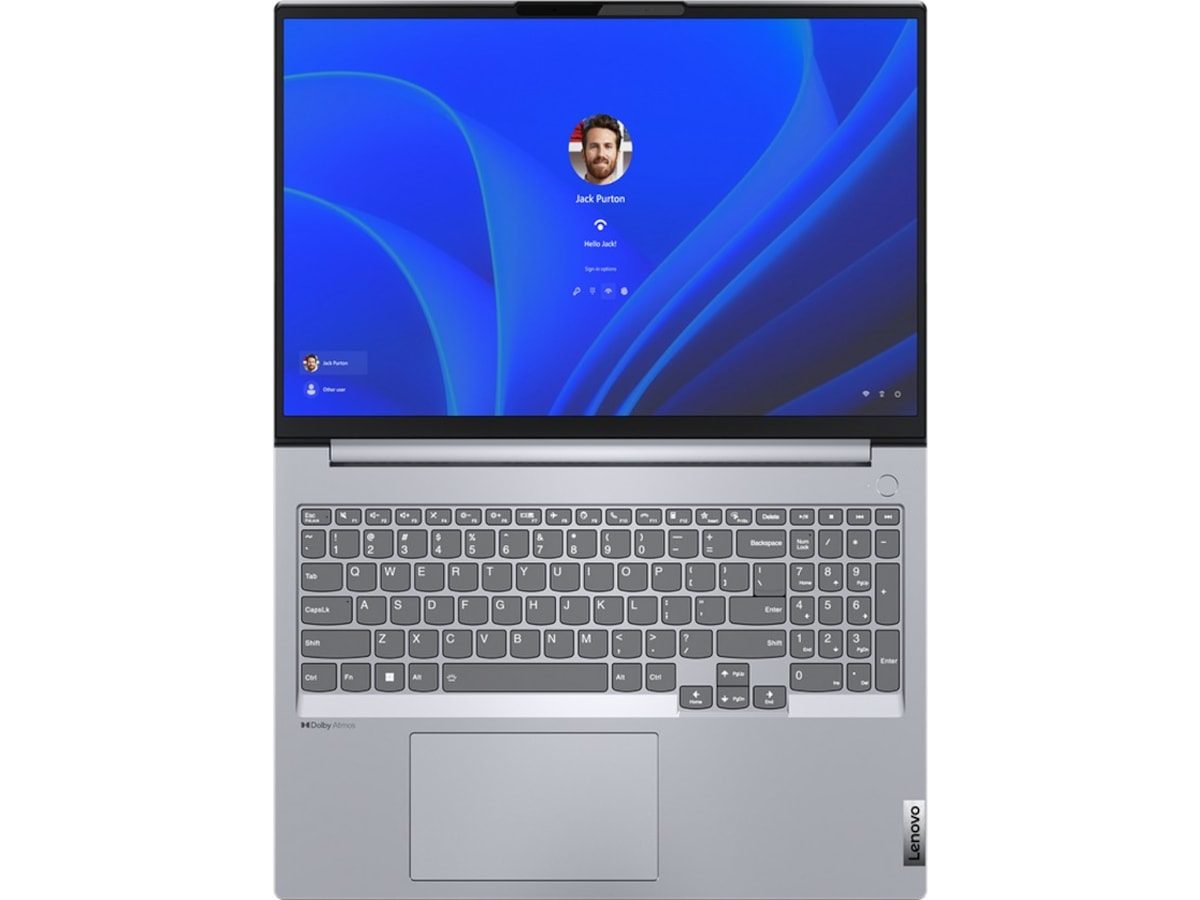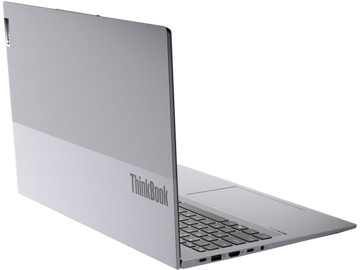 ThinkBook 16 Gen 4 är stor och kraftfull, ingen tvekan om det. Den är också snygg och bärbar, från bara 1,82 kg och så tunn som bara 16,5 mm/0,65". Den tvåfärgade Arctic Grey exteriören (anodiserad aluminium på tre sidor) passar alla affärsmiljöer. Och chassit rymmer större markörtangenter och en pekplatta med glasyta som är 47 % större än tidigare modeller.
