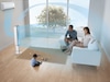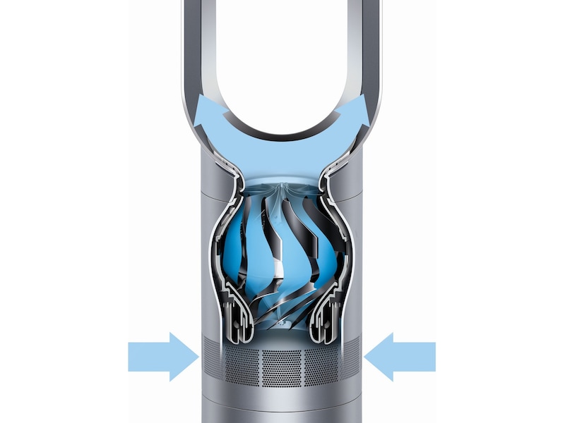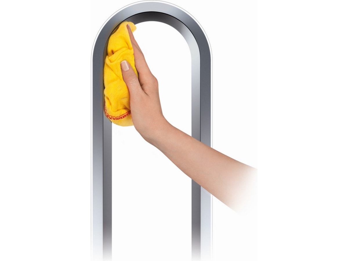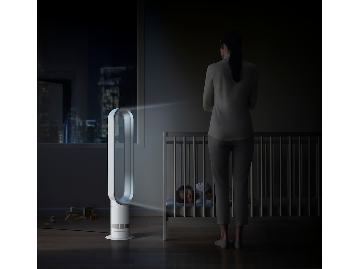 Den bladlösa designen gör den säker och enkel att rengöra. Den innehåller också en böjd och magnetisk fjärrkontroll med tio exakta luftflödesinställningar. Designad för golv och större ytor.