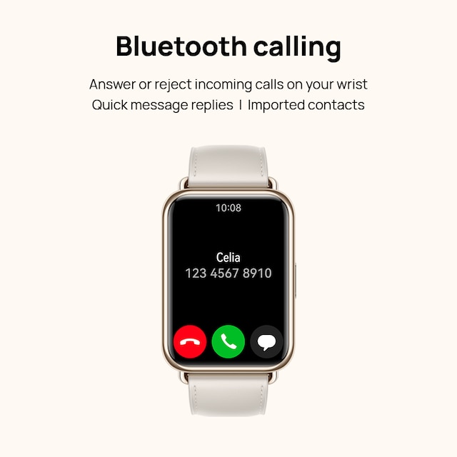 HUAWEI WATCH FIT 2 är mer än bara en klocka; Du kan enkelt kommunicera med den , då den stöder bluetooth-samtal¹ och förinställda sms-svar². Vart du än går så kan du känna dig tillgänglig med klockan på armen.