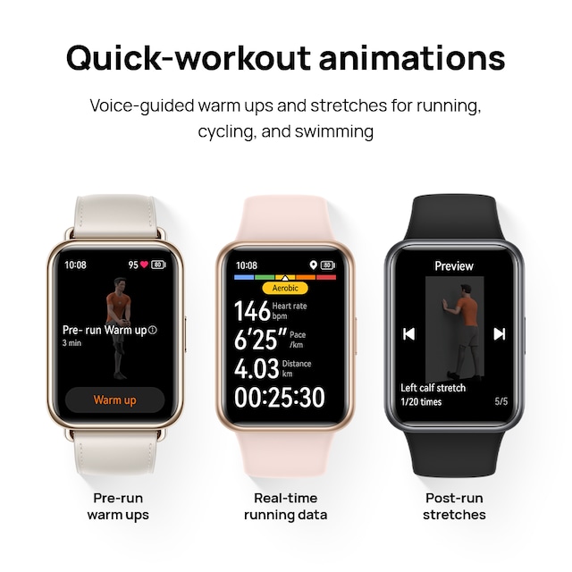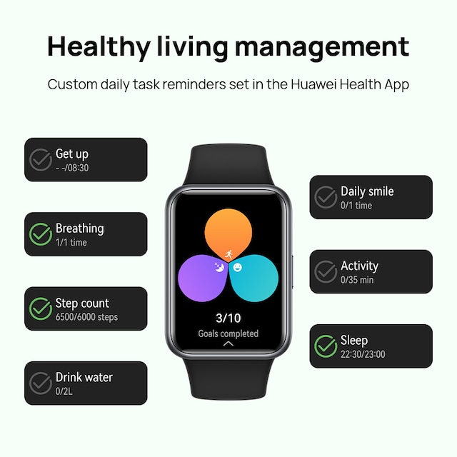 Det typiska för en smartklocka är att den stöder Bluetooth-samtal och den dynamiska helheten kompletteras av en informativ 1,74-tums HUAWEI FullView touchscreen.
