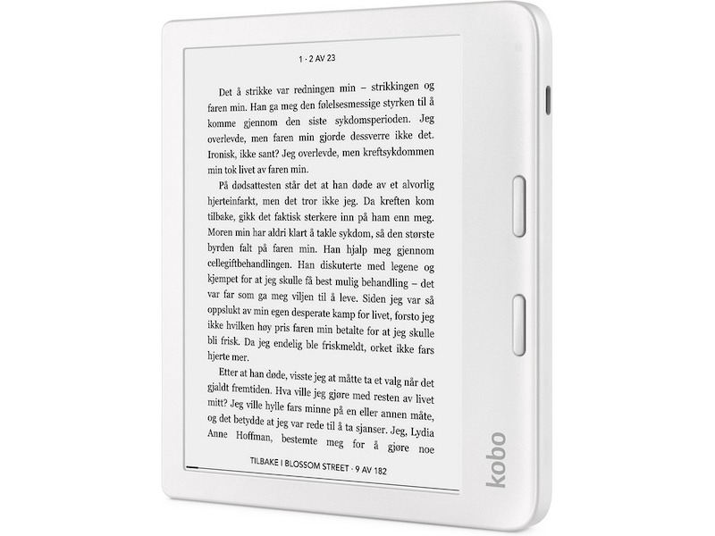 Kobo Libra 2 har ergonomisk design som känns bra i dina händer. Håll liv i historien genom att svepa över pekskärmen eller använda sidvändningsknapparna när en av dessa händer är upptagna. Du har också möjlighet att läsa i liggande läge. Oavsett om det är efter träningen, på bussen eller när du försöker få barnen att sova är Kobo Libra 2 skapad för att passa ditt liv.