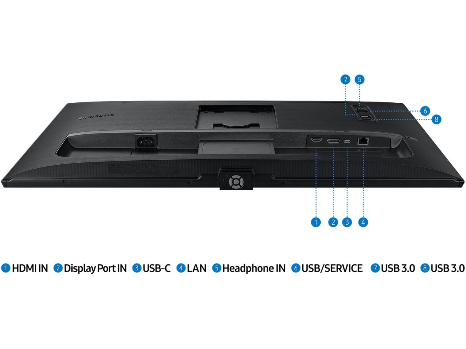 DisplayPort 1.4, LAN, HDMI (HDCP 2.2), USB-C (ström upp till 90W), 3 x USB 3.0