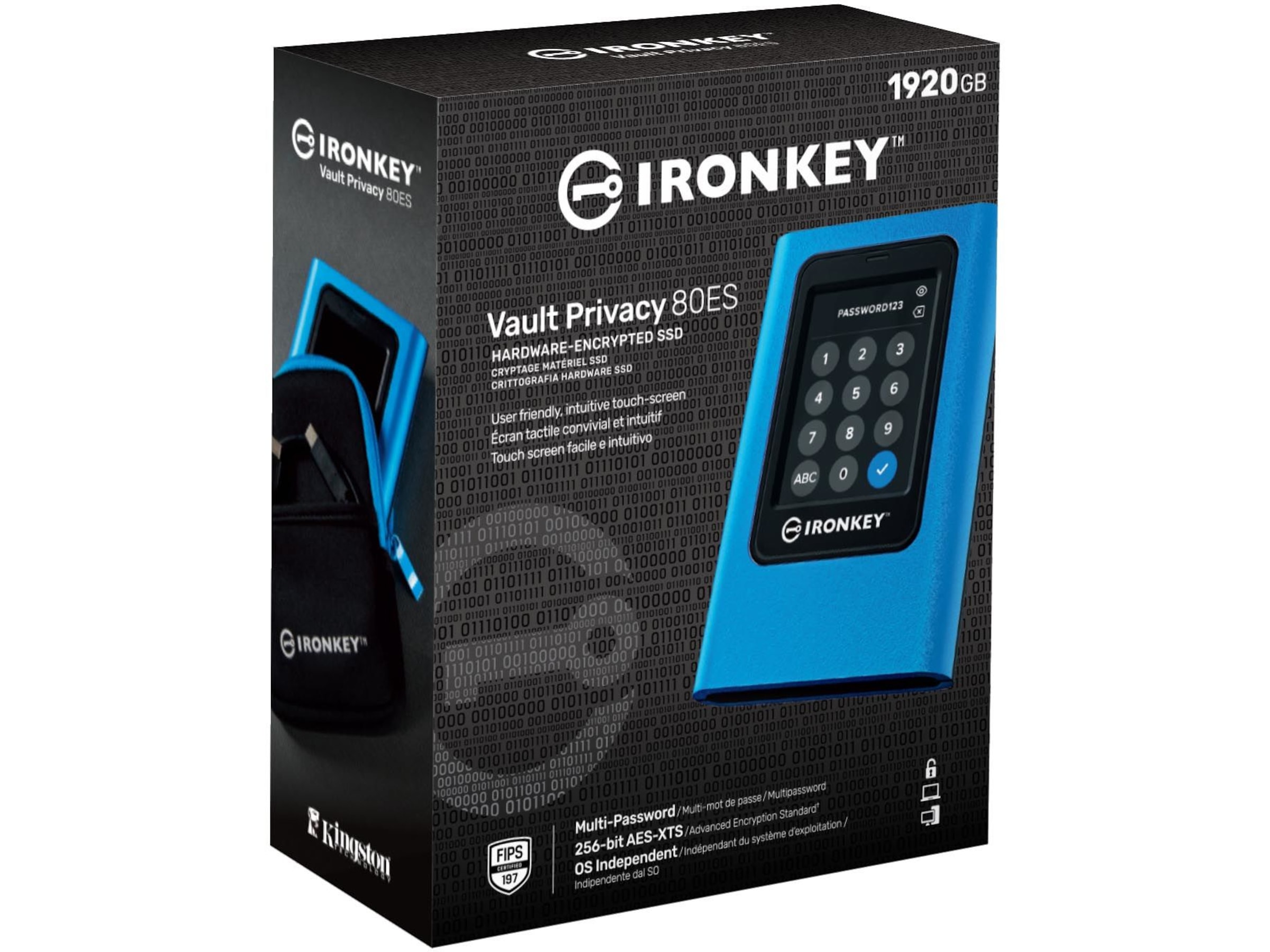 Kingston IronKey™ Vault Privacy 80 External SSD är Kingstons första innovativa OS-oberoende hårdvarukrypterade externa SSD med pekskärm för dataskydd. VP80ES skyddar mot Brute Force-attacker och BadUSB med digitalt signerad firmware. Skydd mot Brute Force-attacker kryptoanalyserar enheten om Admin- och användarlösenorden skrivs in felaktigt 15 gånger 1 gång i rad som standard. Enheten är FIPS 197-certifierad med XTS-AES 256-bitars kryptering med en Common Criteria EAL5+ (CC EAL5+) certifierad säker mikroprocessor och är TAA-kompatibel.