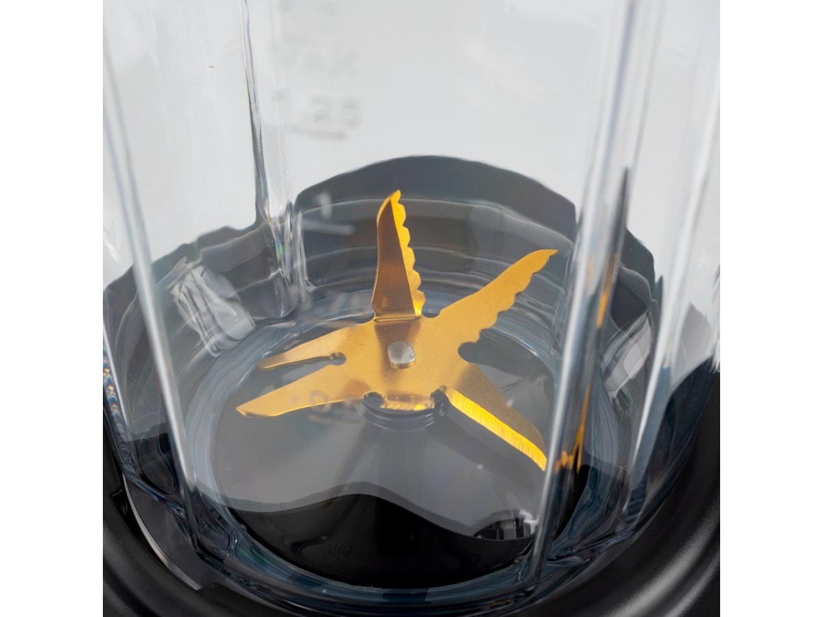 Höghastighetsmixern har tre förinställda program och sex titanbelagda blad i rostfritt stål. Skärknivarna är tillverkade med innovativ Powelix Life-teknologi, som kombinerar den perfekta skärvinkeln med knivarnas optimala form. Detta ger ett unikt resultat för både mjuka och hårda ingredienser, och en mycket slät och krämig konsistens utan kvarvarande bitar.