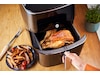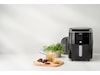 När varmluften cirkulerar snabbt skapas en effektiv tillagningseffekt som gör att maten smakar stekt utan användning av olja. Resultatet är en perfekt krispig yta och en mör och saftig insida. Grönsaker och halloumi kan tillagas på detta sätt. För att förenkla den dagliga användningen finns det sju förinställda program för tillagning av krispiga pommes frites, nuggets, kyckling, pizza, kött, fisk och dessert.