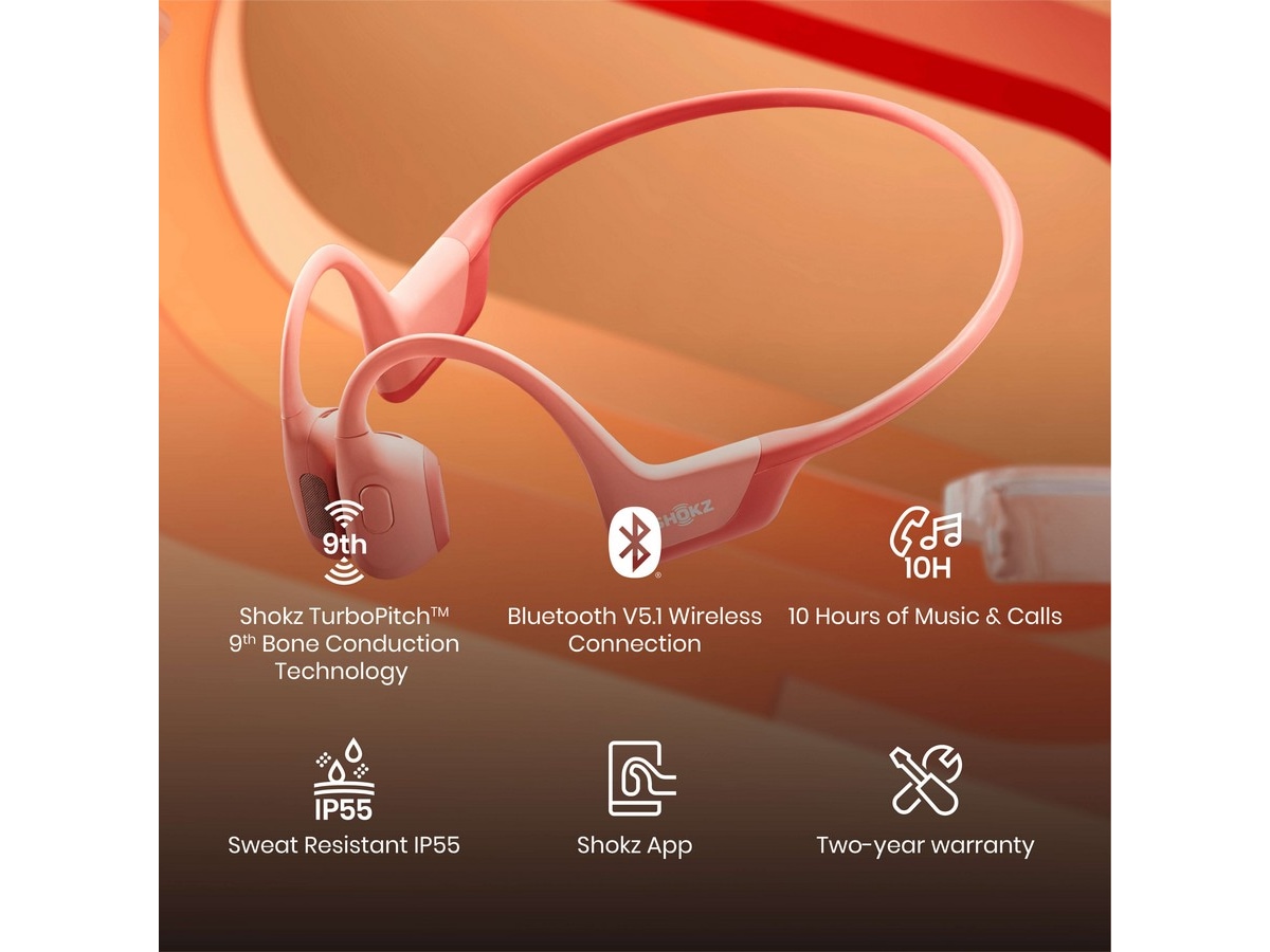 Våra nya flaggskeppshörlurar för sport har patenterad 9:e generationens benledningsteknik (kallad Shokz TurboPitchTM-teknik) och en förfinad design med vår signatur för situationsmedvetenhet och bekväma passform som du känner till och älskar.
