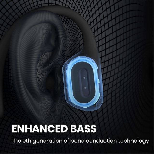 OpenRun Pro är konstruerad med 9:e generationens benledningsteknik (som kallas Shokz TurboPitchTM-teknologi) för att ge skarpa och tydliga mellanregister till högfrekventa ljud, samt den nya Shokz TurboPitchTM-tekniken för att leverera bas med otroligt djup.