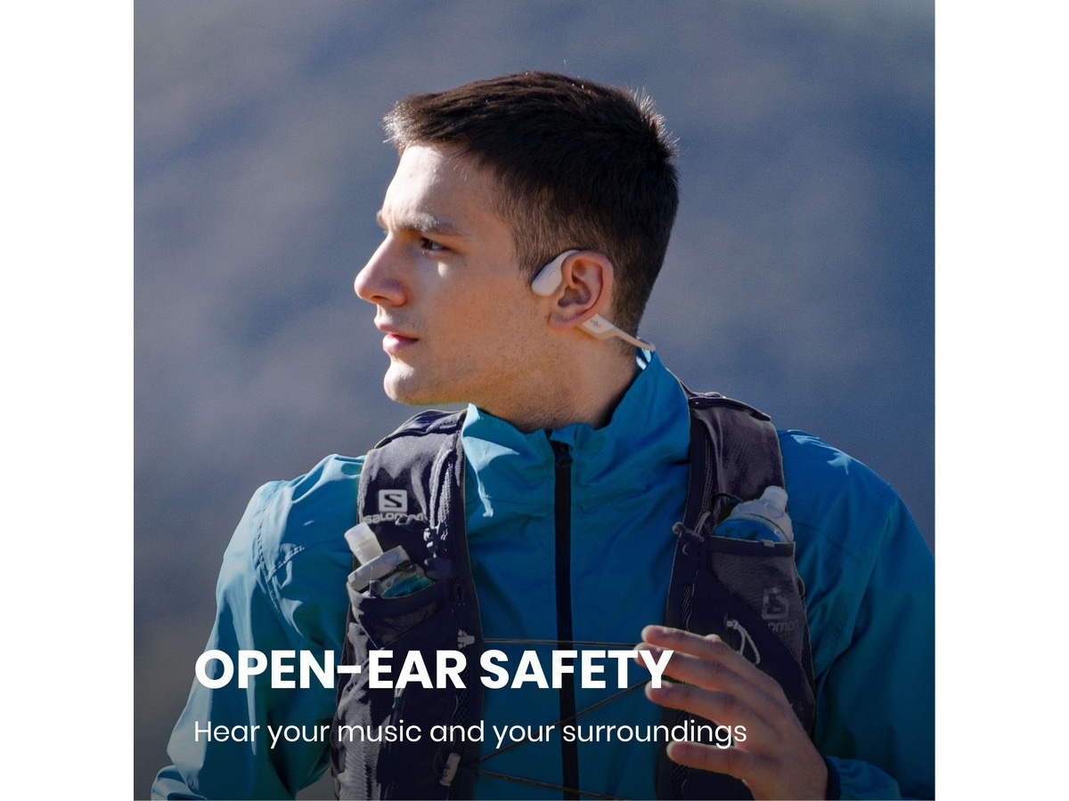 OpenRun Pro har vår egenutvecklade benledningsteknik med open-ear-design som inte alls blockerar dina hörselgångar, vilket gör att OpenRun Pro ger komfort hela dagen för intensiv träning.