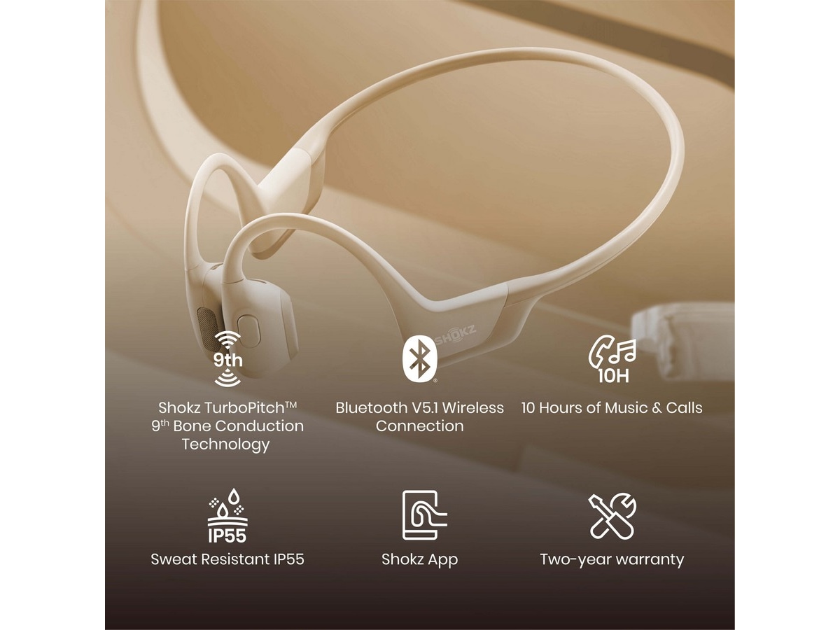 Våra nya flaggskeppshörlurar för sport har patenterad 9:e generationens benledningsteknik (kallad Shokz TurboPitchTM-teknik) och en förfinad design med vår signatur för situationsmedvetenhet och bekväma passform som du känner till och älskar.
