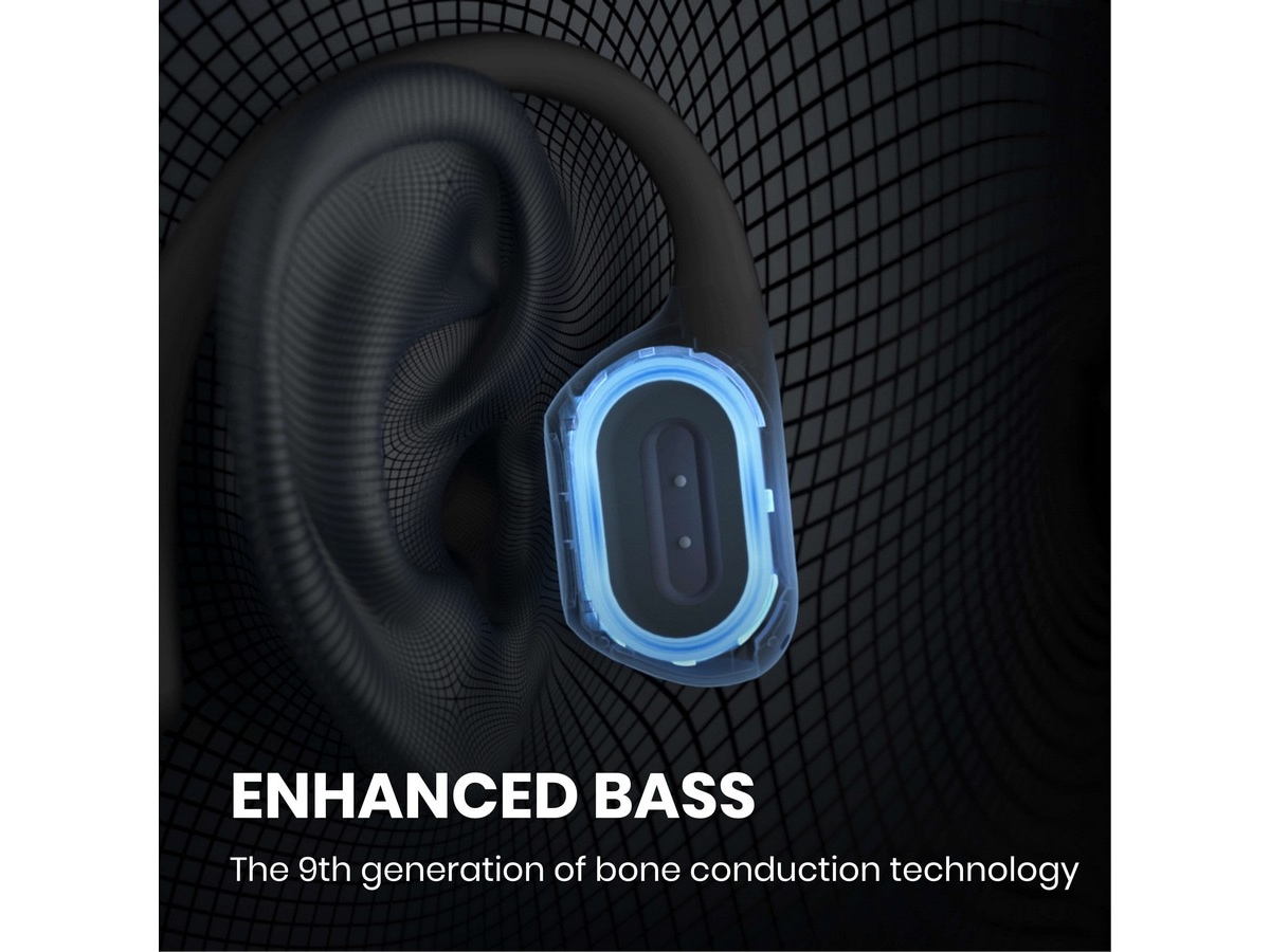 OpenRun Pro är konstruerad med 9:e generationens benledningsteknik (som kallas Shokz TurboPitchTM-teknologi) för att ge skarpa och tydliga mellanregister till högfrekventa ljud, samt den nya Shokz TurboPitchTM-tekniken för att leverera bas med otroligt djup.