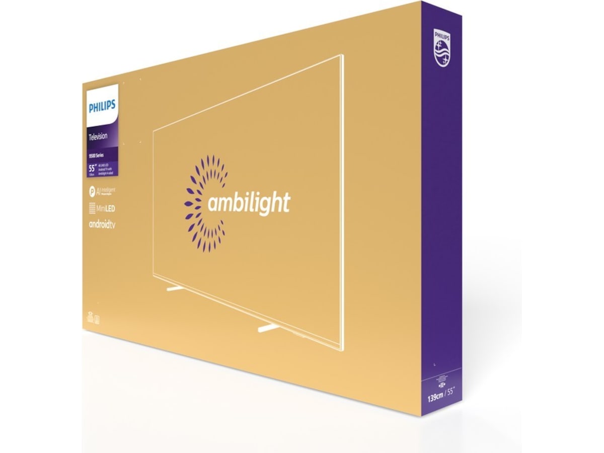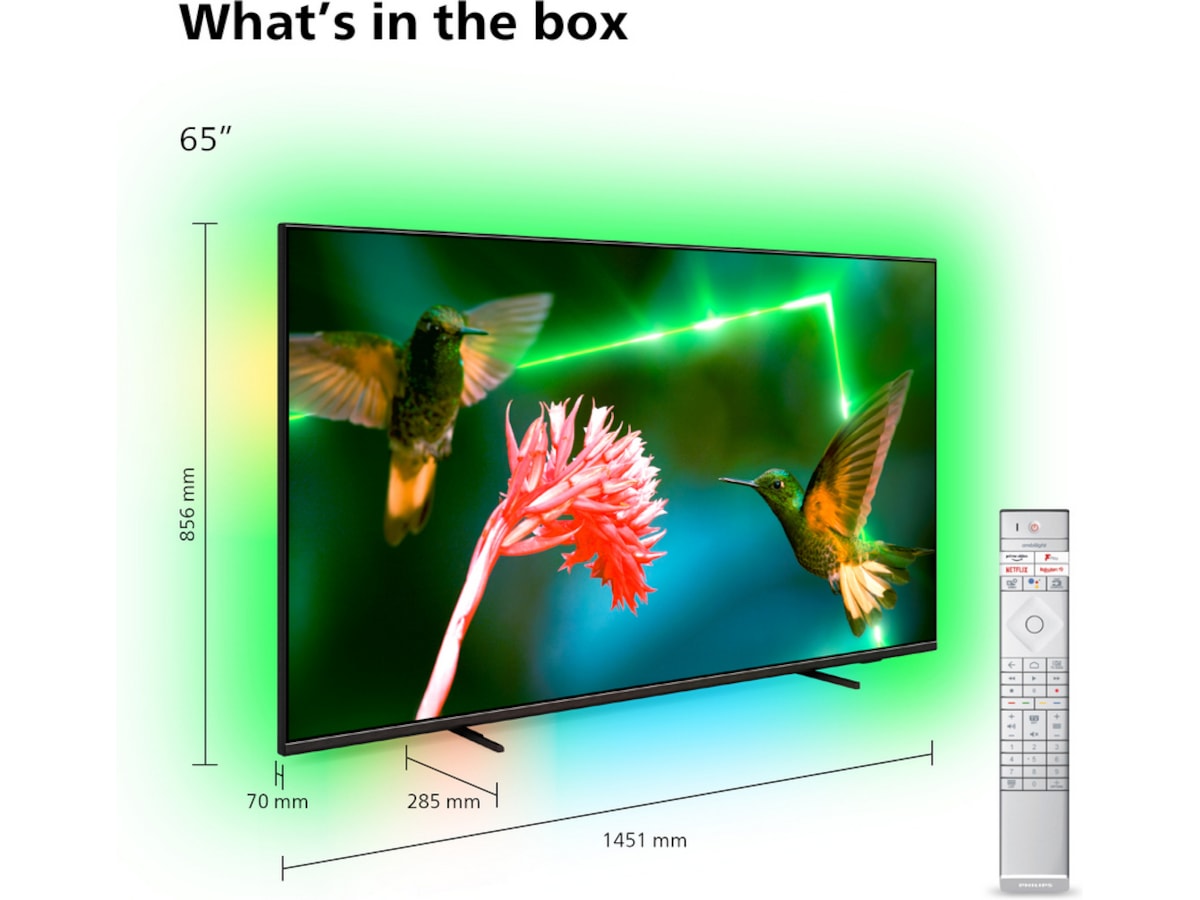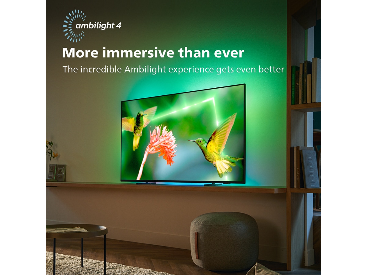 Storbildsformat. Mini-LED-TV. Mer upplevelsehöjande än någonsin. 4-sidig Ambilight. Oavsett vad du tittar på så är bilden så verklig. P5-motor med AI. Förstklassig design. Paketerad för framtiden. Äkta färger. Otroligt djup. Flexibelt ljud.