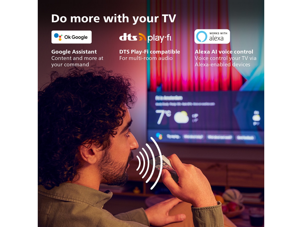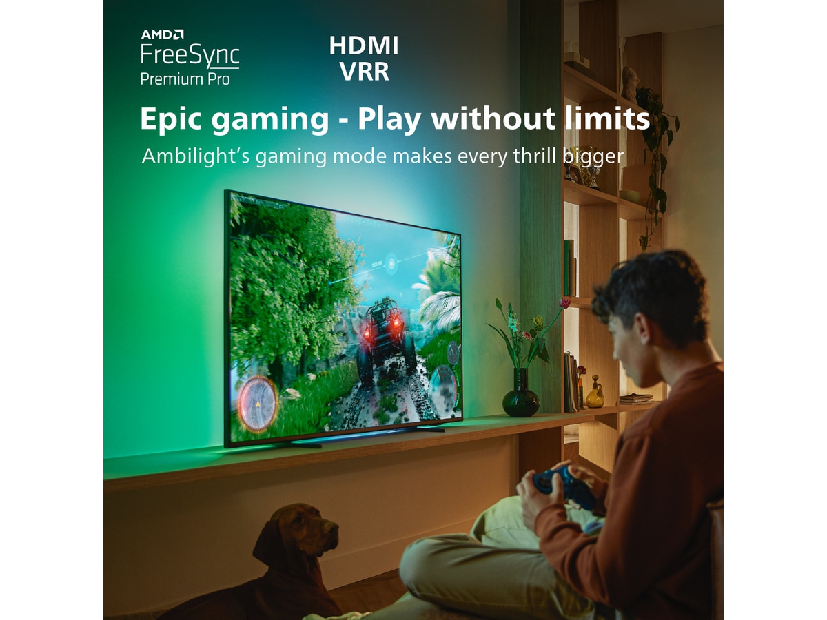 Philips 4K UHD MiniLED Android TV Mer realistisk, mer detaljerad, mer responsiv – upplev allt med en Philips MiniLED-TV! Vår bästa LED-bild och Ambilight gör allt du tittar på eller spelar fantastiskt. Du får jämna spelrörelser och utmärkt ljud.