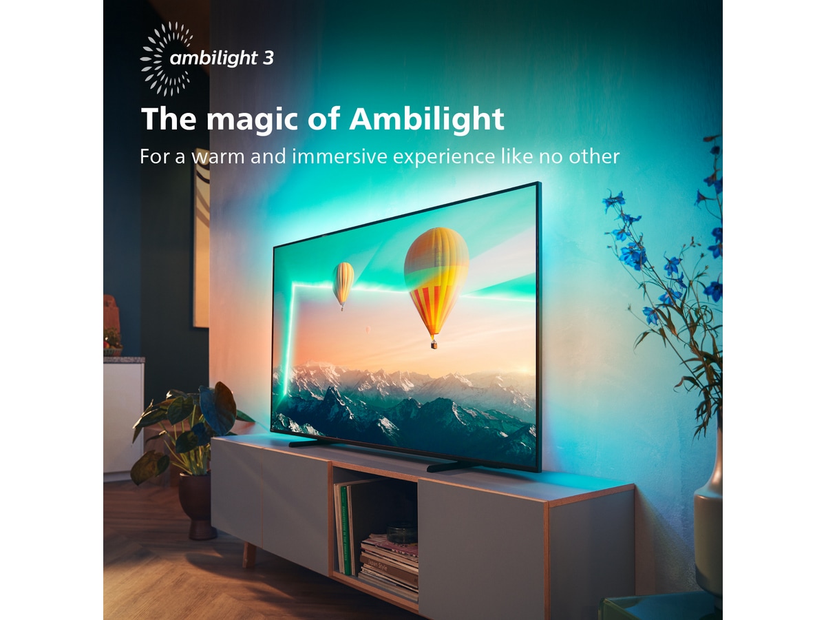 Med Philips Ambilight blir den fantastiska upplevelsen av att titta på en Philips-TV ännu större! LED-lampor runt kanten på TV:n lyser och ändrar färg i perfekt synkronisering med färgerna på skärmen eller i musiken. Det är så varmt och upplevelsehöjande att du kommer att undra hur du någonsin kunde titta på TV utan det.