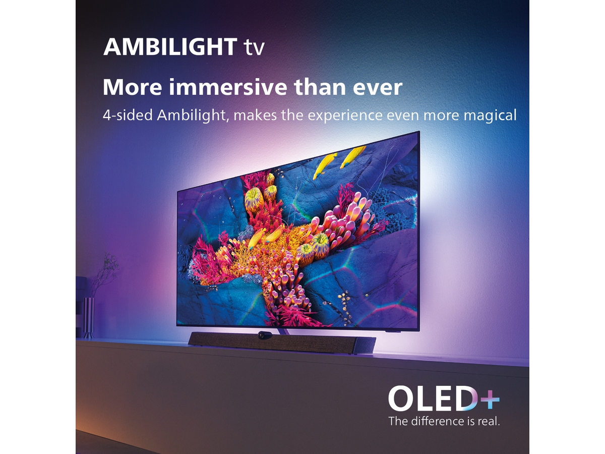 En TV som vilken soffa som helst skulle stå framför med stolthet. Bli fängslad av djup svärta och fyllig OLED-färg, det kristallklara ljudet från Bowers & Wilkins. Och Ambilight, som fyller rummet med spänningen i allt du tittar på, eller spelar.