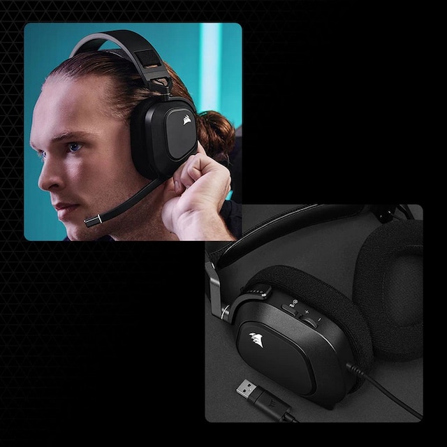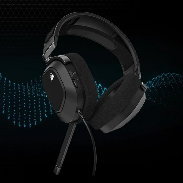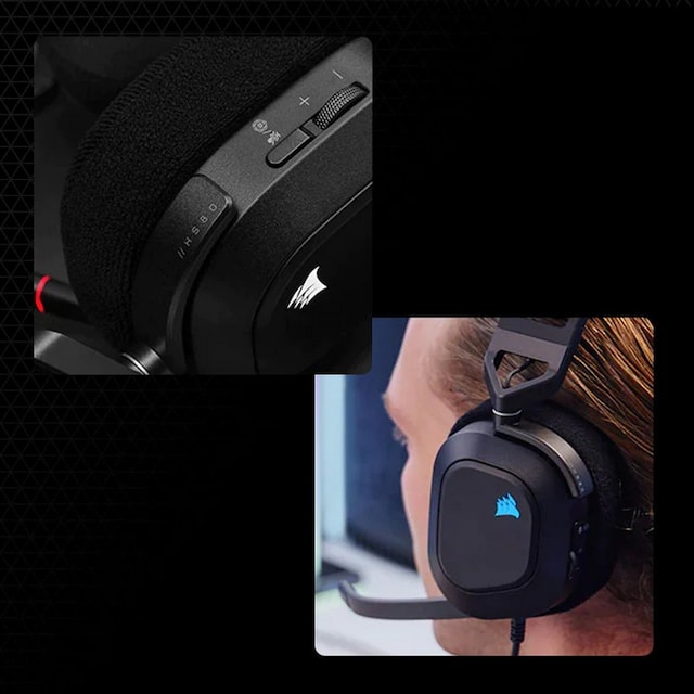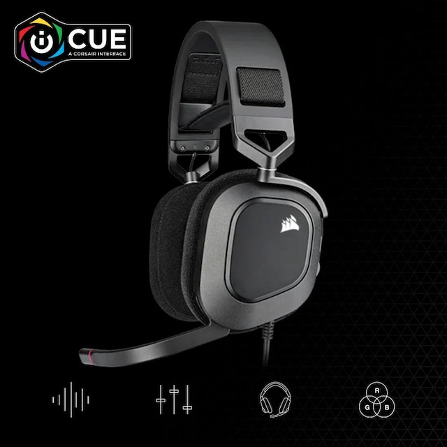 Programvaran CORSAIR iCUE ger dig full kontroll över ditt headset, med förinställda ljudprofiler, anpassade ljudinställningar, möjligheten att höra din egen röst i lurarna och anpassningsbar RGB-belysning.