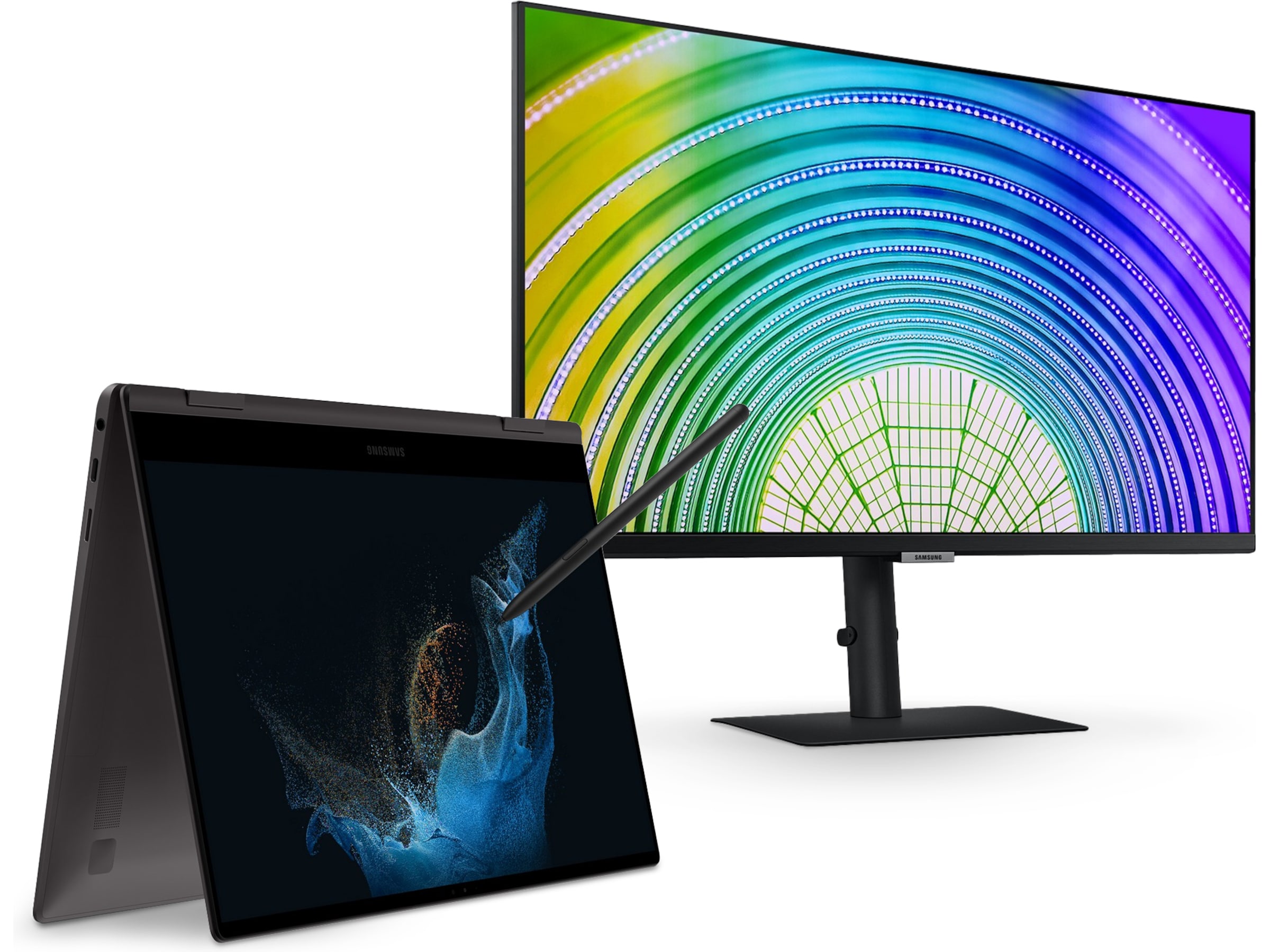 Samsung Galaxy Book2 Pro 360 13,3" med Samsung 27" skjerm S27A600