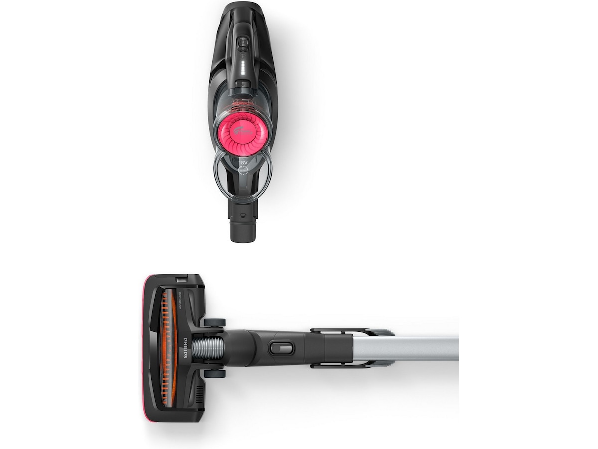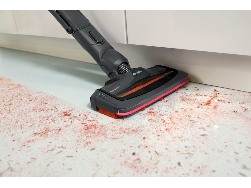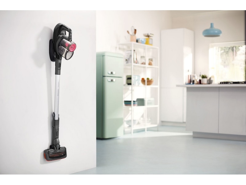 Den nya trådlösa SpeedPro-dammsugaren rengör snabbt och har ett brett utbud. Den är utrustad med ett 180° munstycke som exakt absorberar damm, även i svåra områden, nära väggar, möbler och i hörn.