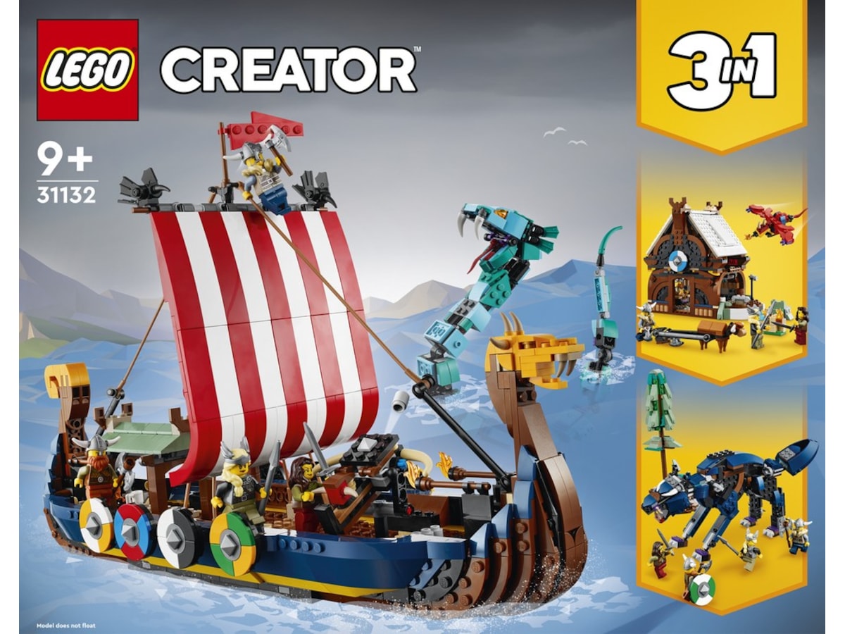 • 3 vikingaleksaker i 1 set – Barn kommer att älska setet LEGO® Creator 3in1 Vikingaskepp och Midgårdsormen (31132), med ett vikingaskepp, ett vikingahus och en fenrisulv
