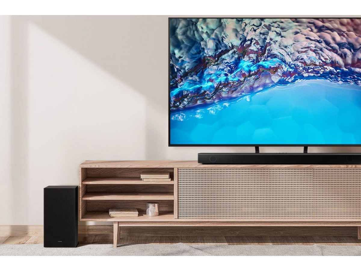 Samsung HW-B660/XE Förhöj din upplevelse med 3D-surroundljud och inbyggd mitthögtalare Dolby Audio / DTS Virtual:X Subwoofer medföljer Bass Boost Inbyggd centerhögtalare