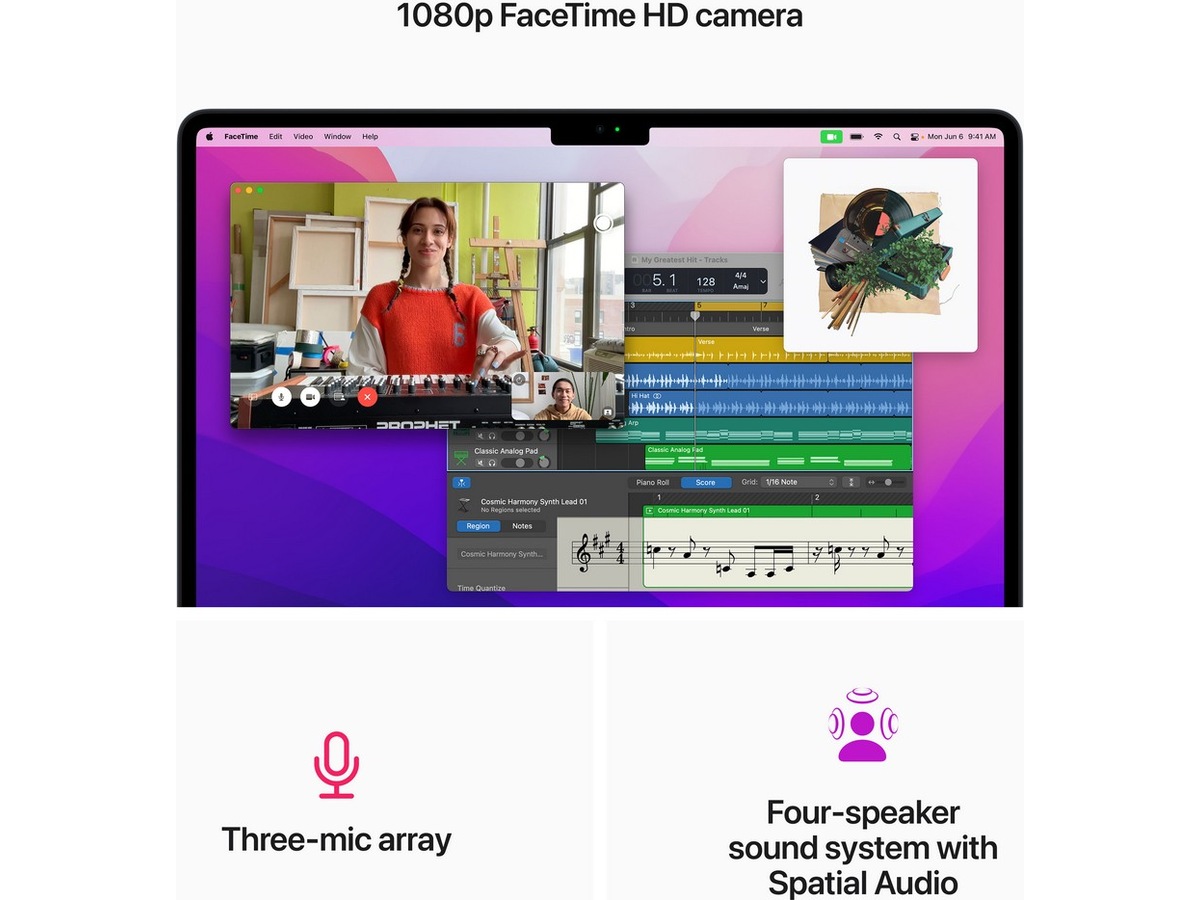 - 13,6-tums Liquid Retina-skärm med 500 nit ljusstyrka och stort färgomfång (P3) ger starka färger och otroliga detaljer3