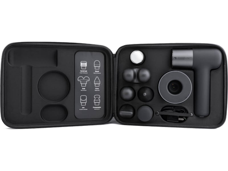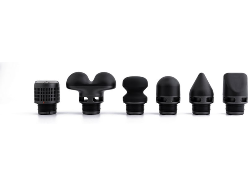 Massagepistolen har en stark och tyst motor, och levereras med ett kraftfullt batteri som räcker upp till fem timmar per laddning. Massagepistolen kan ställas in på sex olika massagenivåer, sex olika temperaturer och har sex olika massagemunstycken som utvecklats och testats för specifika muskelområden.
