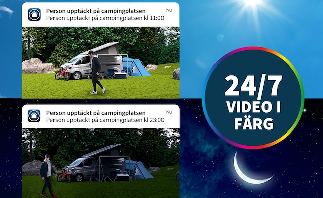 Se exakt vad som händer i ditt hem i klara färger även i mörkret med mörkerseende i färg och med full HD-upplösning.