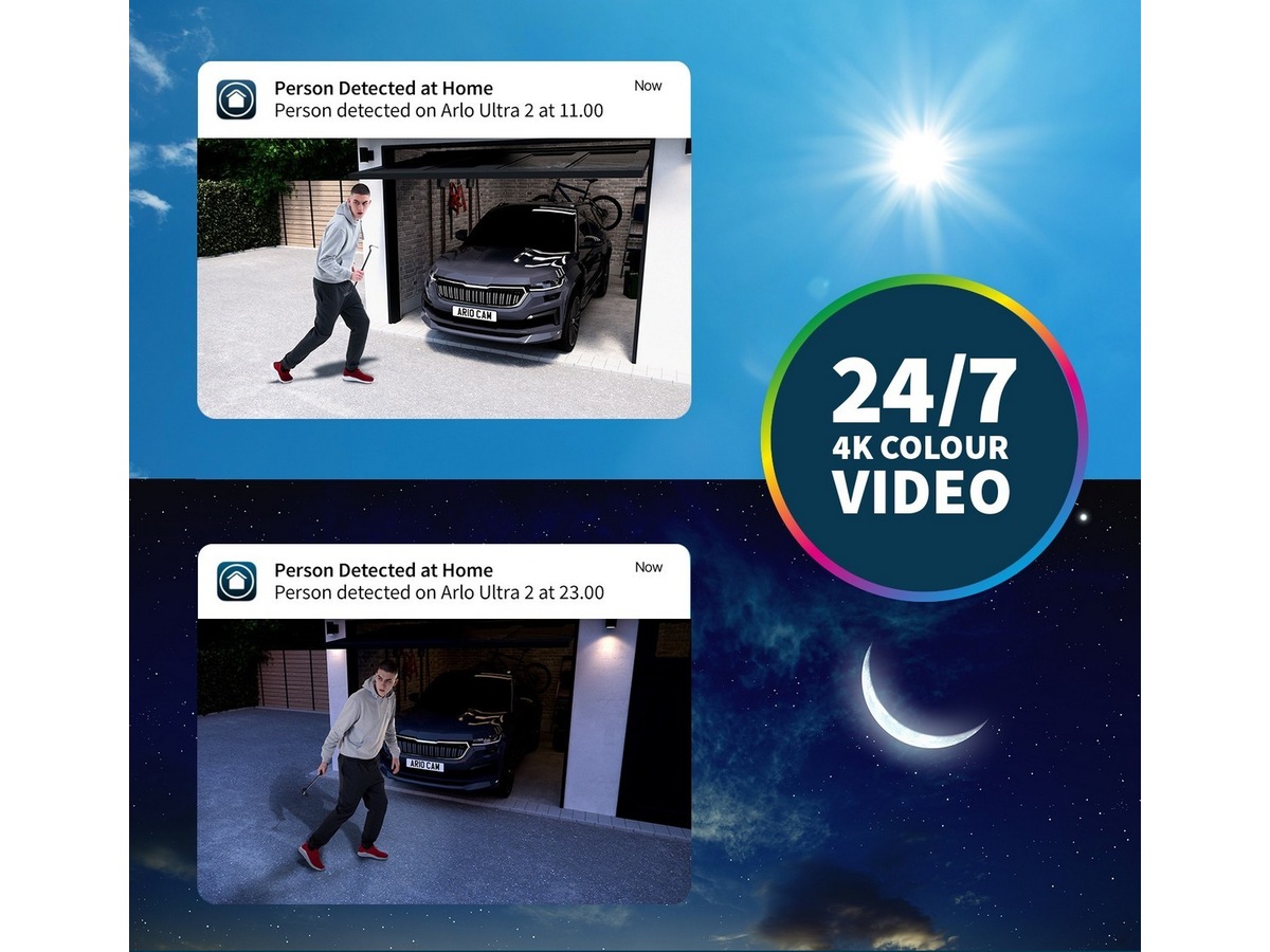 Få rörelsenotifikationer direkt och livestreama video eller välj en Arlo Secure-prenumeration (säljs separat) för att spara videoklipp i molnet. Du kan se tillbaka på de när som helst i appen. Hör och tala med besökare som om du var där med specialiserad brusreducerande ljudteknik och se med klara färger även i den mörkaste natten.