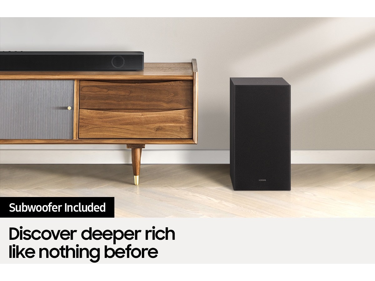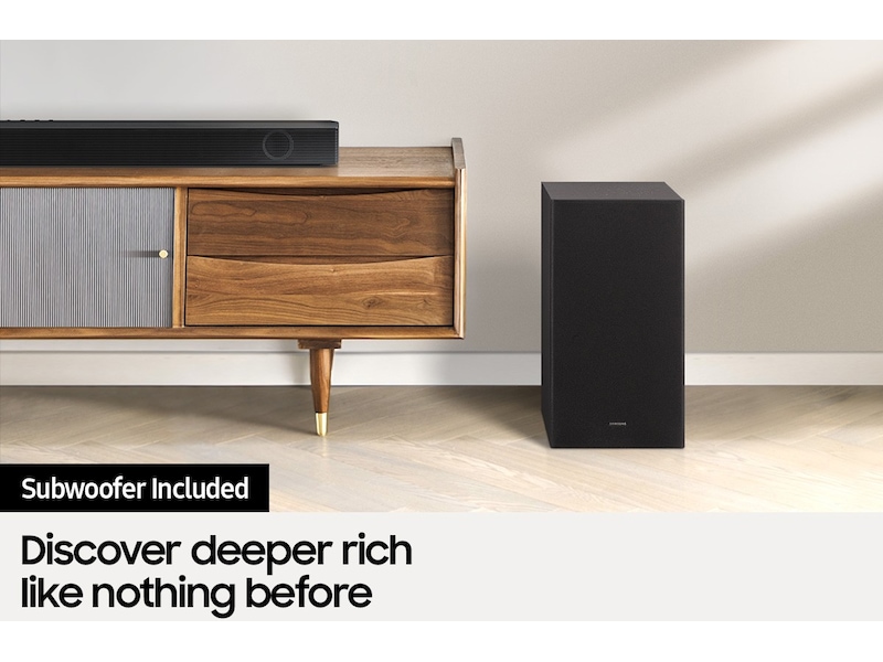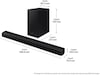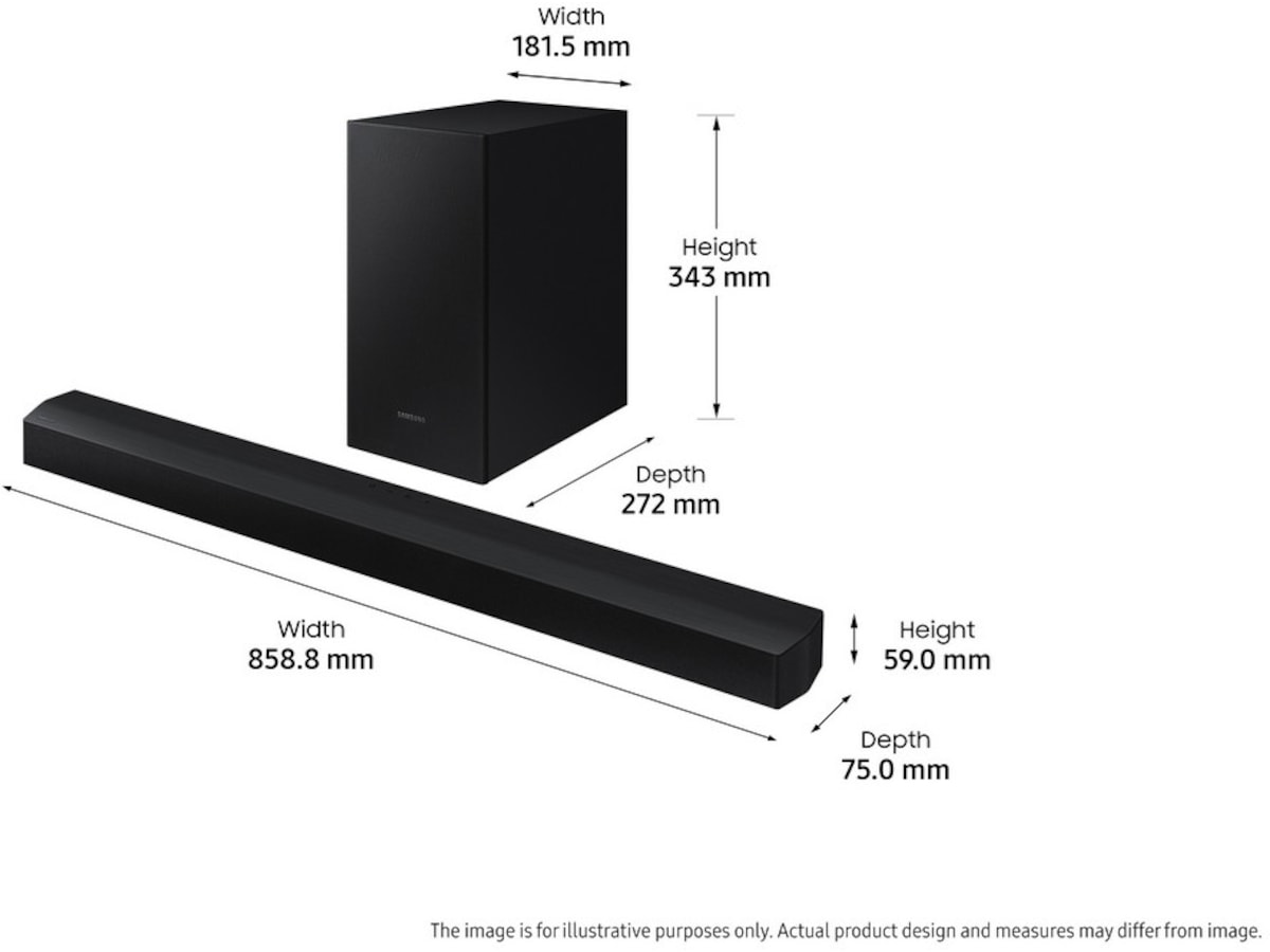 Subwoofer: 18.4 cm x 29.5 cm x 34.3 cm / 4.4 kg, Soundbar: 85.88 cm x 7.5 cm x 5.9 cm / 1.4 kg |