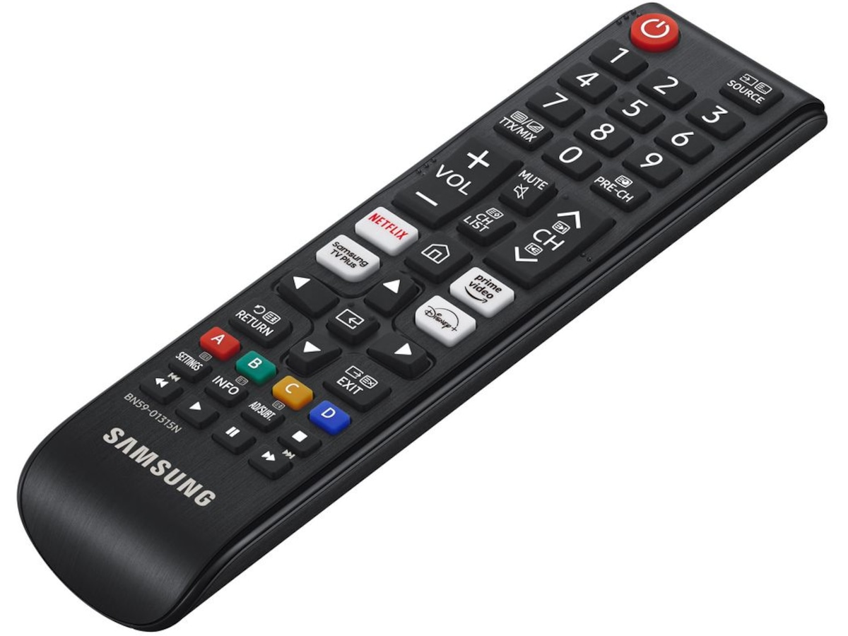 Samsung fjärrkontroll i svart plast för Samsung QLED TV, LED TV, The Frame och The Sero.
