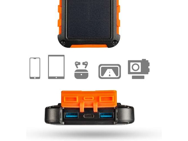 Kraftfullt batteri med hög kapacitet - Solcellsladdaren är utrustad med ett 10 000 mAh litiumpolymerbatteri, tillräckligt kraftfullt för att ladda en smartphone minst fyra gånger. Laddaren har också en 20 W USB-C-utgång som snabbladdar din smartphone, så att du alltid är redo att åka.