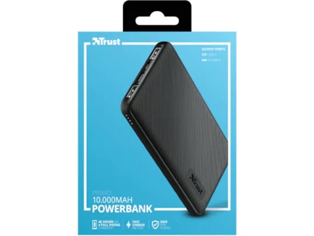 Dagarna med tomt telefonbatteri är över. Snabbladdning: Trust Primo powerbank 10 000 mAh är din bekväma strömkälla när du är på språng. Kompakt i storleken, helt kompatibel via USB-A- eller USB-C-portar, och laddning av tre enheter samtidigt: nu kan du hålla kontakten var som helst och när som helst.