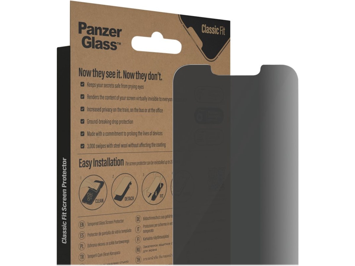 PanzerGlass™ skärmskydd med Privacy har samma kärnfördelar som originalglaset, samtidigt som det skyddar innehållet på skärmen. Ett sekretessfilter gör innehållet på skärmen nästan osynligt för alla utom för användaren av enheten. Samtidigt minskar den exponeringen för blått ljus och har en antireflexbeläggning, som minskar ljusreflektioner som når dina ögon utan att påverka skärmens synlighet.