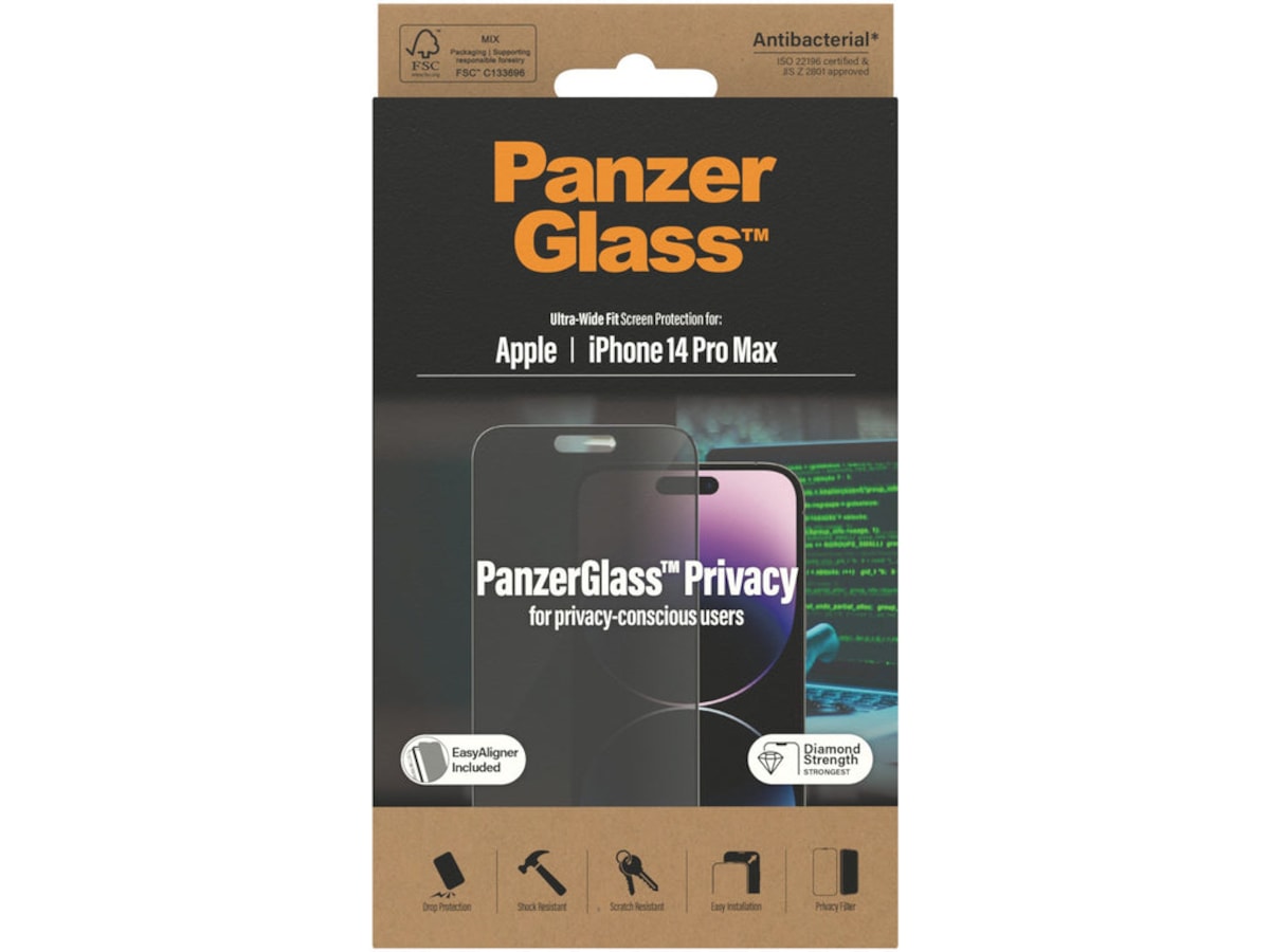 PanzerGlass™ skärmskydd med Privacy har samma kärnfördelar som originalglaset, samtidigt som det skyddar innehållet på skärmen. Ett sekretessfilter gör innehållet på skärmen nästan osynligt för alla utom för användaren av enheten. Samtidigt minskar den exponeringen för blått ljus och har en antireflexbeläggning, som minskar ljusreflektioner som når dina ögon utan att påverka skärmens synlighet.