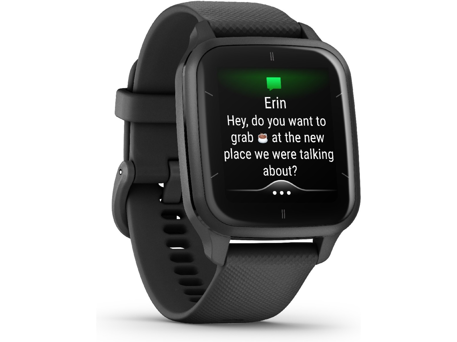 Se allt tydligt med stor, lättläst text på den ljusa AMOLED-skärmen med förbättrad grafik och ett ständigt påslaget läge, perfekt för snabba blickar. Skärmstorleken är 17 % större än den ursprungliga Venu Sq-serien.