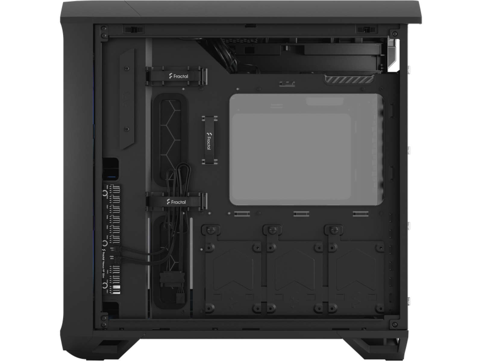 • Med ett mATX-moderkort (eller mindre) monterat, kan de två 180 mm-fläktarna i fronten flyttas till botten av höljet, vilket möjliggör främre radiatorstöd och oöverträffad GPU-kylning