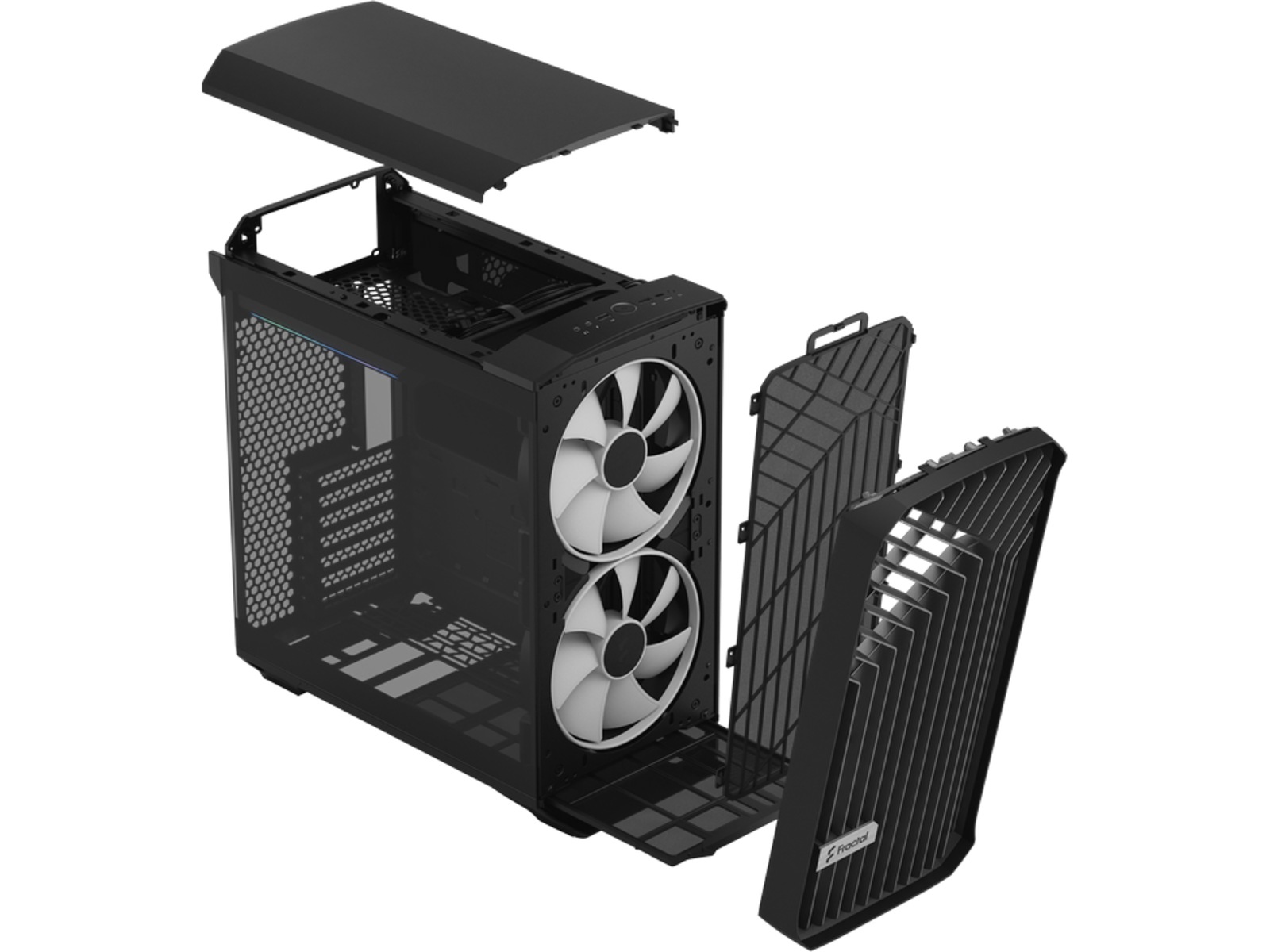 Torrent Compact är byggd för att luftkyla din kompakta konstruktion så effektivt som möjligt. Huvudsakliga utmärkande egenskaper inkluderar en inspirerande layout, det öppna frontgrillen och två av våra 180 x 38 mm Dynamic PWM-fläktar (eller Prisma ARGB-fläktar för RGB-versionen) skräddarsydda för att uppnå maximal luftkylning samtidigt som kontrollerade ljudnivåer bibehålls. Torrent Compact möjliggör högeffektiv kylning med eller utan vattenslinga och passar perfekt för luftkylningsälskare som letar efter ett kompakt fodral.